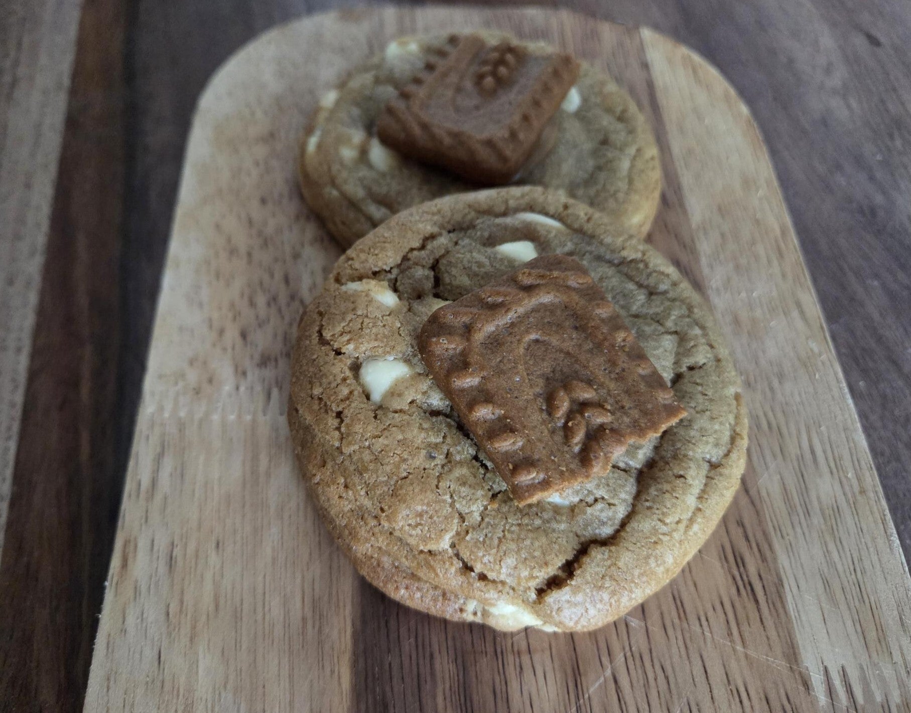 Een heerlijke koek gevuld met witte chocolade van fijne kwaliteit en speculoos. Afgetopt met een Lotus speculooskoekje!