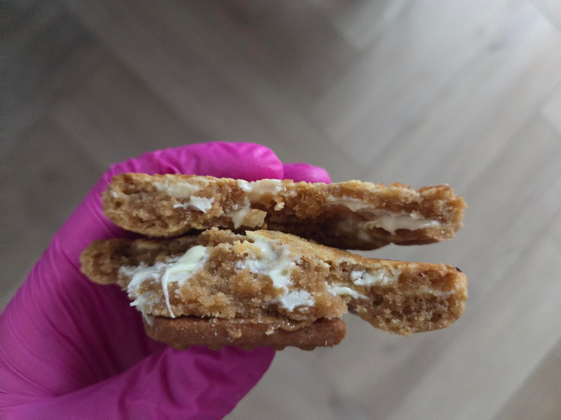 Een heerlijke koek gevuld met witte chocolade van hoge kwaliteit en speculoossmaak. Afgetopt met een speculooskoekje!